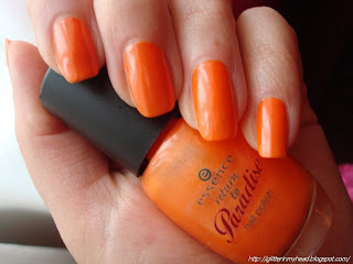 Najcudowniejszy kolor paznokietków. As for nail polish, it's definitely like the bright colors. Lots of times I tried to persuade myself to paint a dark navy, steel, dark green and could not - I like bright colors and have dark tolerate only decorations or patterns of bright colors. Most paints are among my shades of pink, red and orange, and today is my absolute number one - Essence